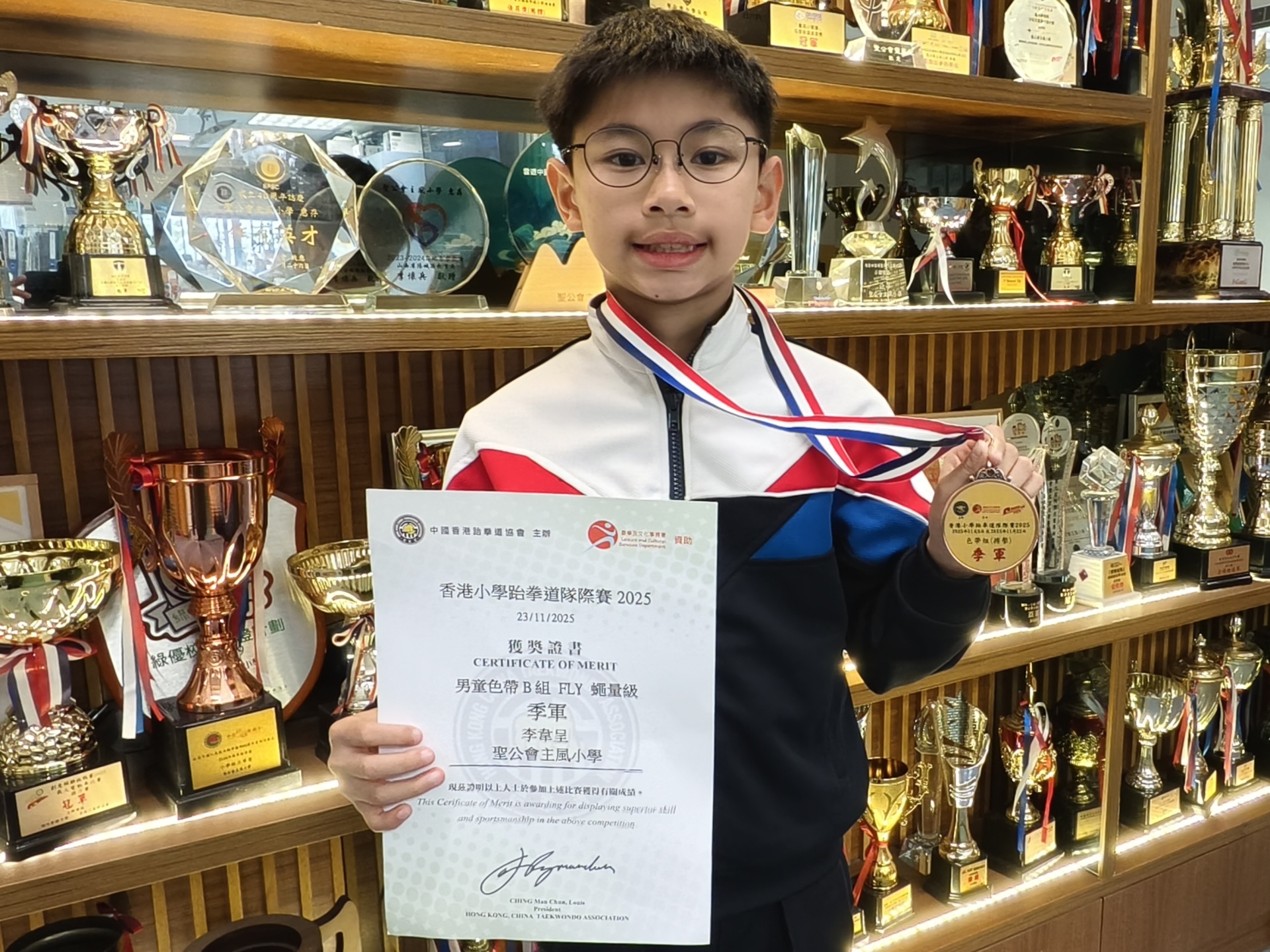 中國香港跆拳道協會 香港小學跆拳道隊際賽2025 男童色帶B組 FLY 蠅量級 (搏擊) 季軍 6C李韋呈