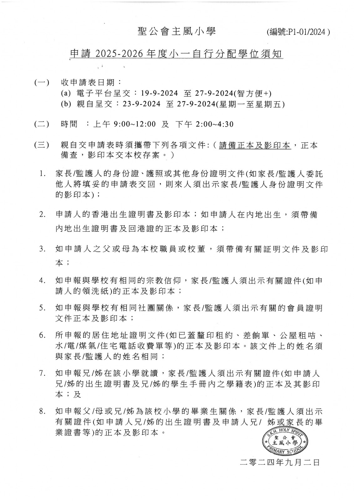 申請2026-2027年度小一「自行分配學位」注意事項 (22-09-25更新)