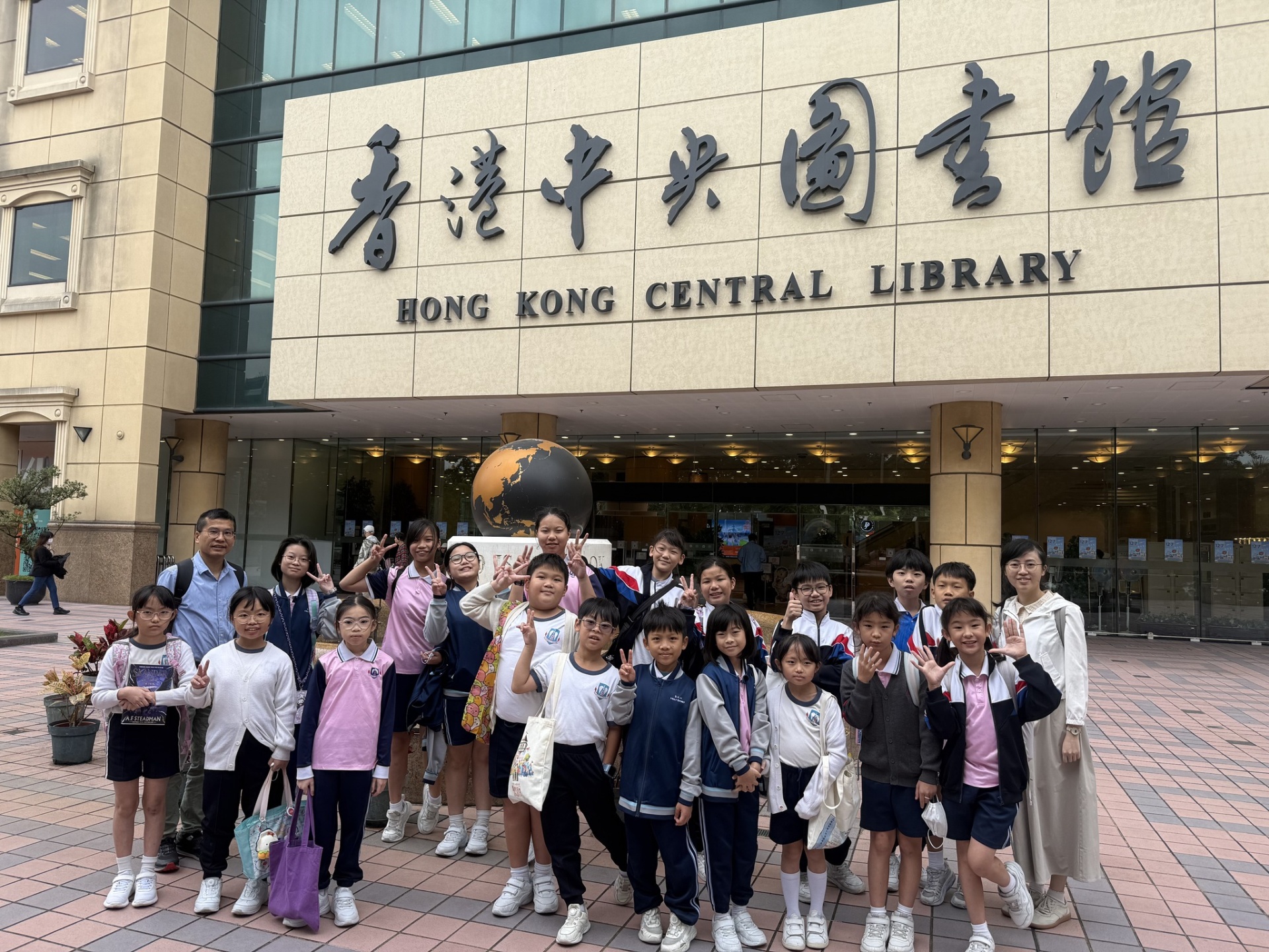 為推廣閱讀風氣及提升本校圖書館管理員的服務質素,本校於11月11日帶領19名四、六年級的學生,參觀香港中央圖書館。學生在兒童圖書館自由閲讀和借書,樂在其中。導賞員向學生介紹公共圖書館的網上資源及帶領學生到各樓層參觀,讓學生對香港中央圖書館的資源有更深入的認識,有助日後學習。
