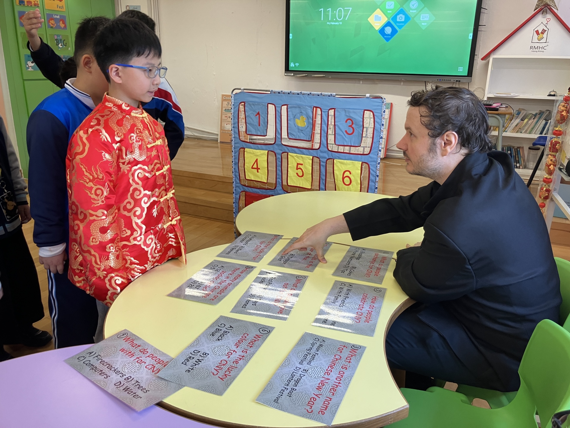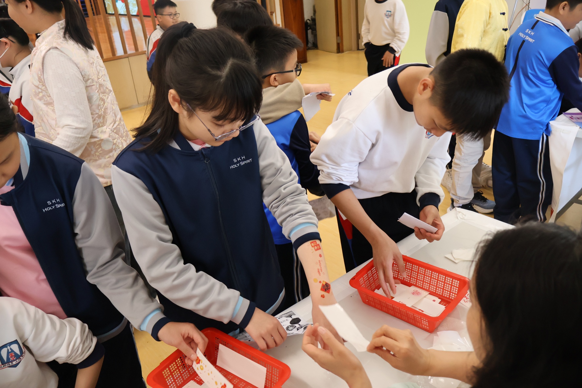 🔠 英文科:CNY Fun Booth & Wonderland P.2-3 同學在 English Wonderland 玩 Bean Bag Throw;P.4-6 同學則在禮堂挑戰 Ring Toss。邊玩邊學英文賀詞,贏取甜蜜糖果!🍬