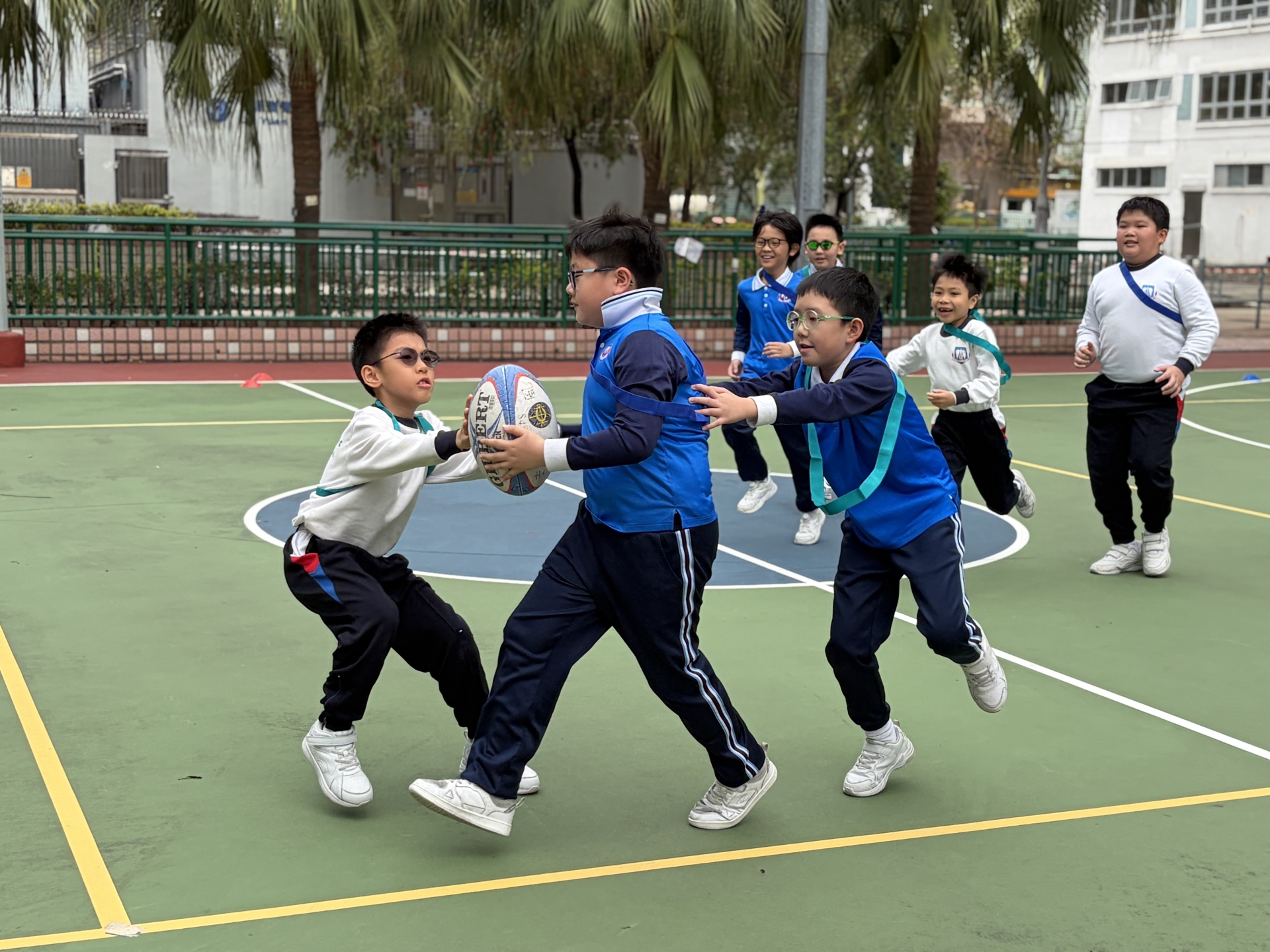 欖球總會於3月6日為四年級學生進行欖球示範課。當天總會安排專業教練於校內進行教學,學生透過活動學習基本的欖球知識和技巧,並嘗試進行簡單比賽。大部分學生首次接觸欖球,他們表示十分享受兩小時的欖球課堂,未來更想參加更多的欖球活動。