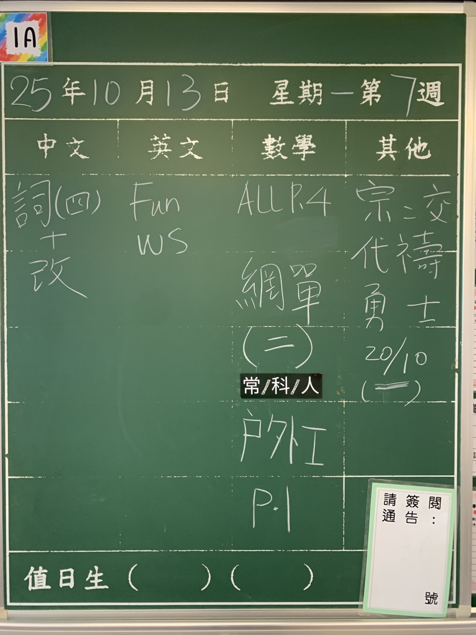 1A2025-10-20 (星期一)