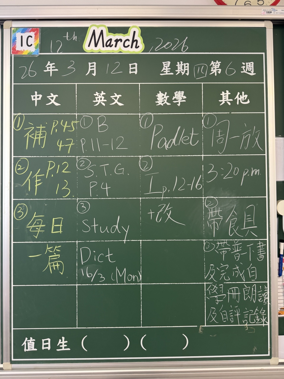 | 1C | 2026-03-12 (星期四) |
