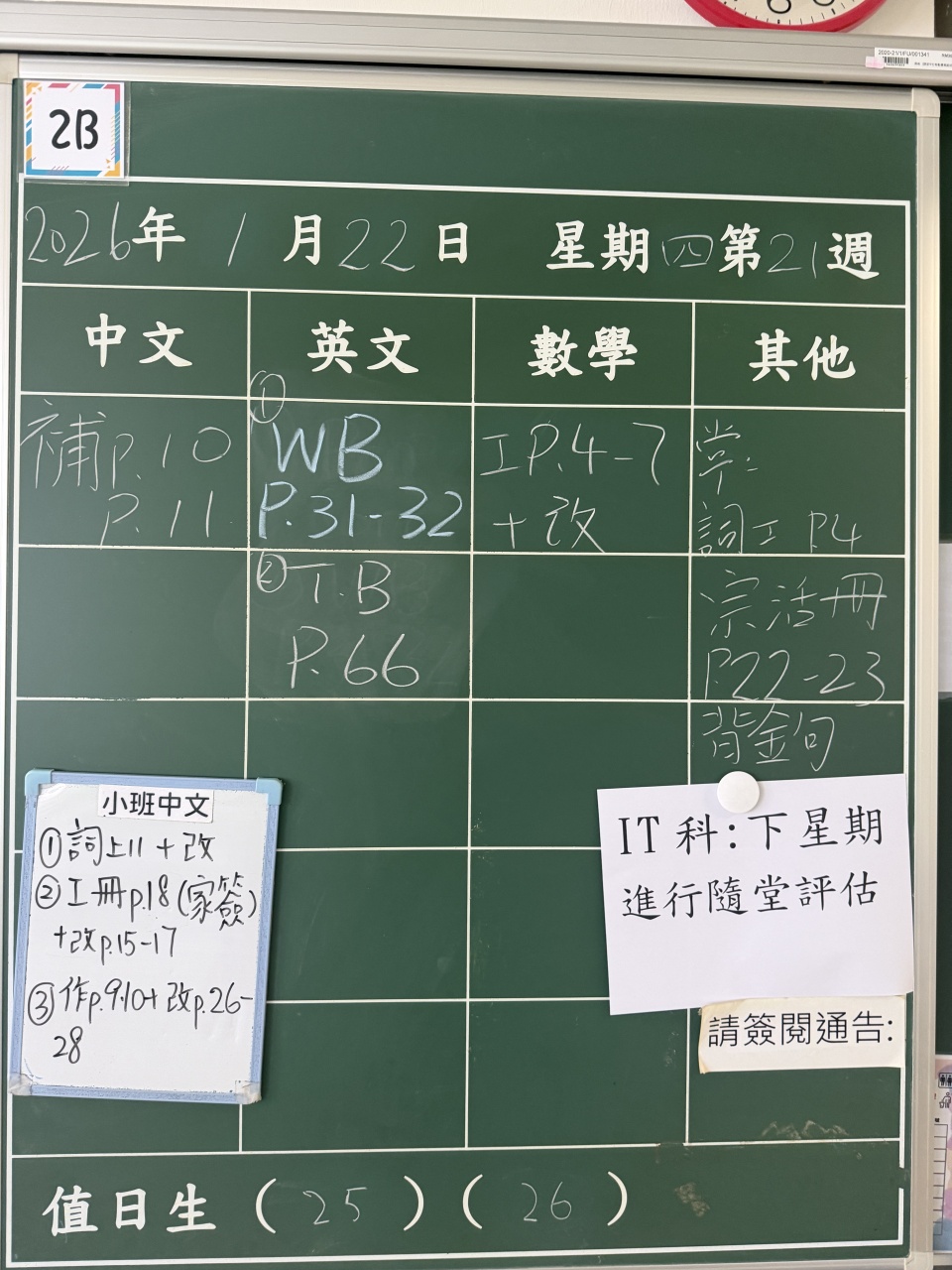 | 2B | 2026-01-22 (星期四) |