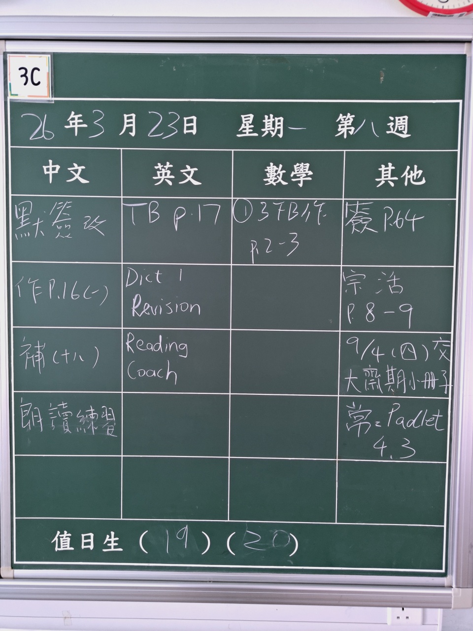 | 3C | 2026-03-19 (星期四) |