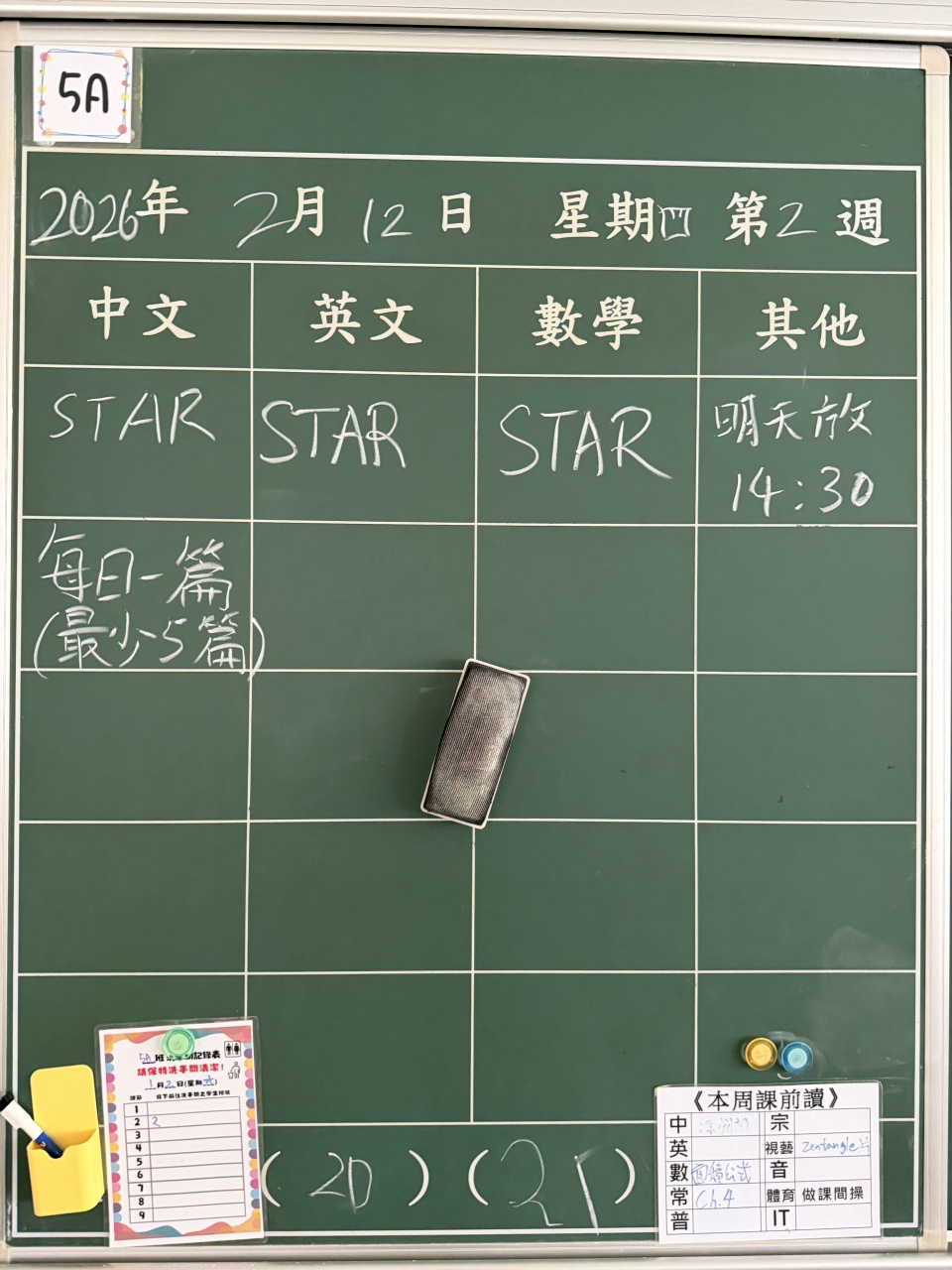 | 5A | 2026-02-12 (星期四) |