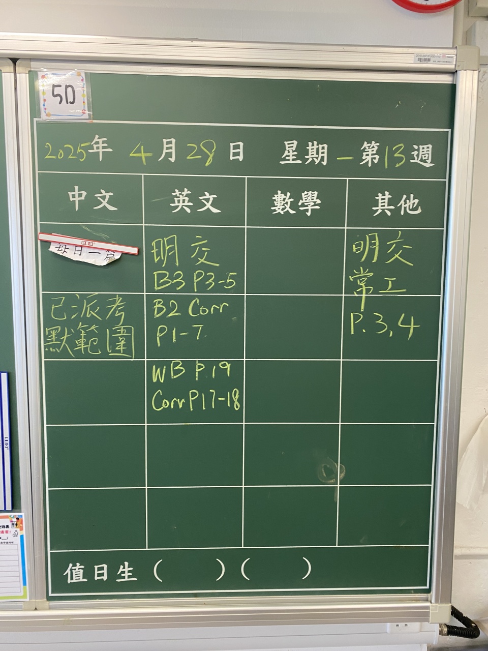 班別發布日期