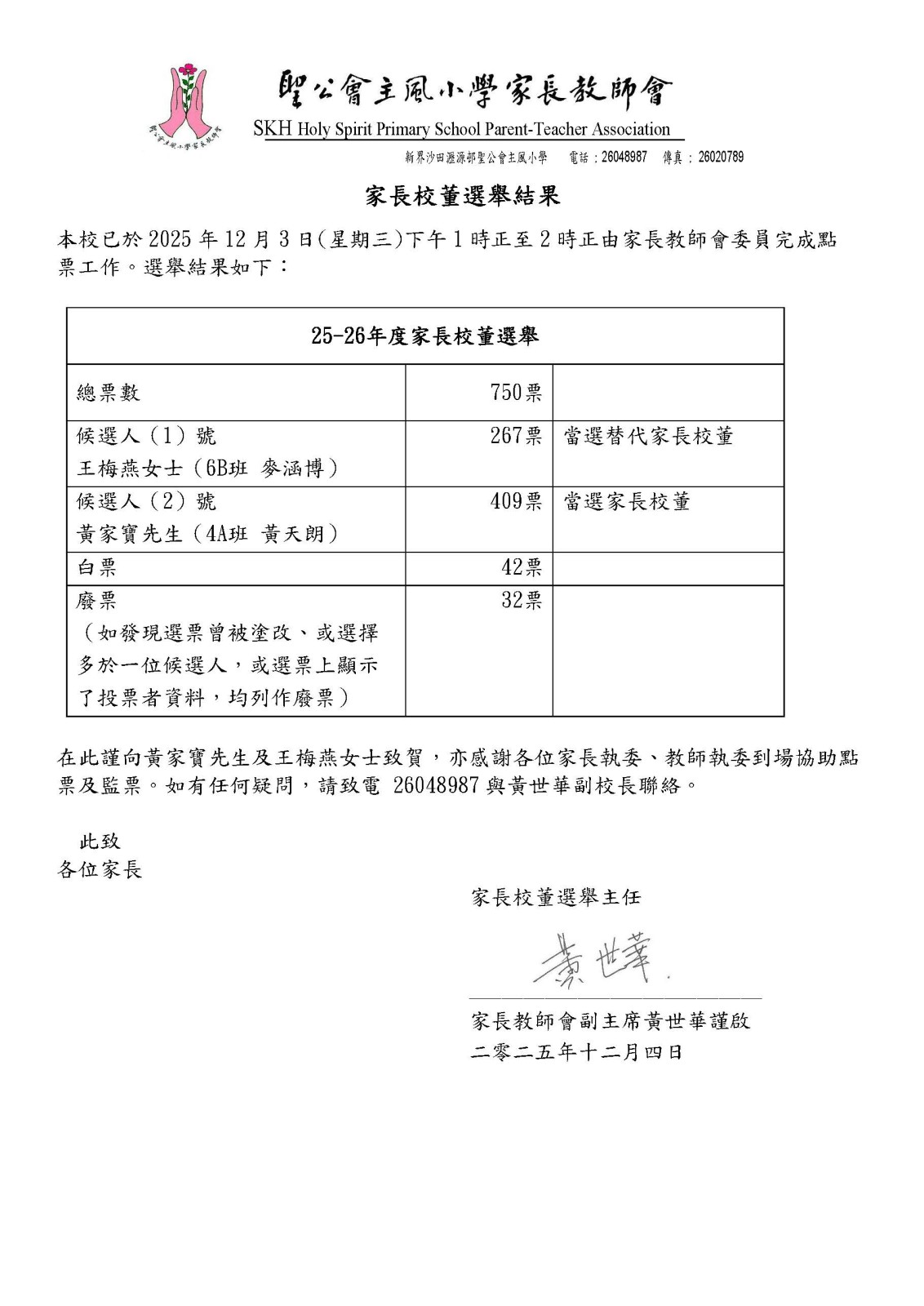 2025-2026年度 家長校董選舉結果