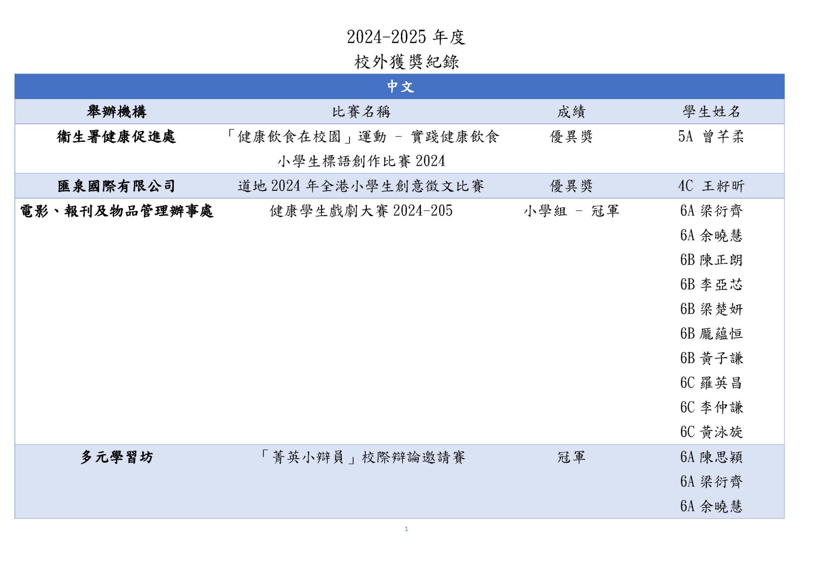 2024-2025年度 校外獎項 2023-2024年度 校外獎項 2022-2023年度 校外獎項 2021-2022年度 校外獎項
