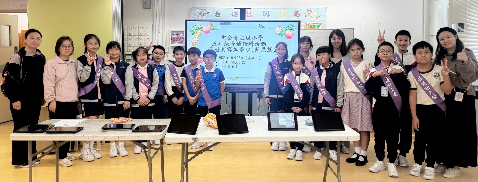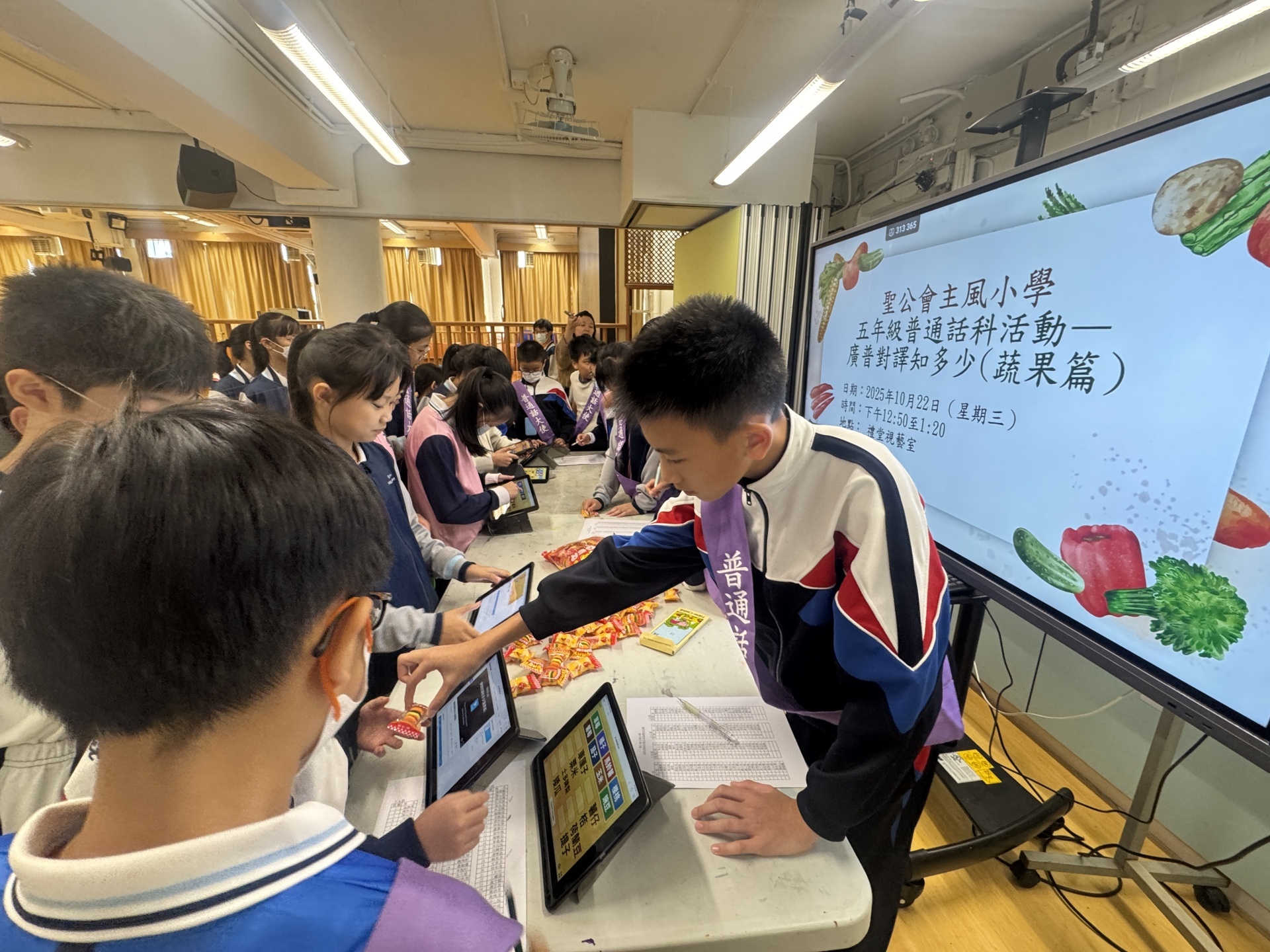 普通話組今年為五年級學生舉辦了「廣普對譯知多少(蔬果篇)」。在此次活動中,學生們透過WORDWALL進行熱烈交流,現場氣氛充滿熱情與期待,十分熱鬧。這次活動不僅增進了學生對廣普對譯的理解,還讓他們在輕鬆愉快的氛圍中,體驗到語言的多樣性與語言藝術之美。