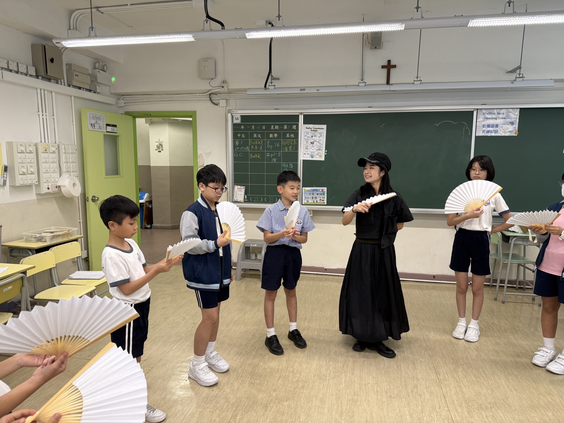 本校中文科參與了由7A班戲劇組主辦的「賽馬會『趣看文言』戲劇教育計劃——文言說書大使」,劇團導師教授文言説書大使(共16位四至六年級學生)認識改編文言文為說書演出的方法,以及說書表演的基礎技巧。文言大使透過培訓,除了掌握文言篇章的內容及當中的傳統智慧,亦提升了自信心、說話能力,建立中華文化和閱讀文言故事的氛圍。