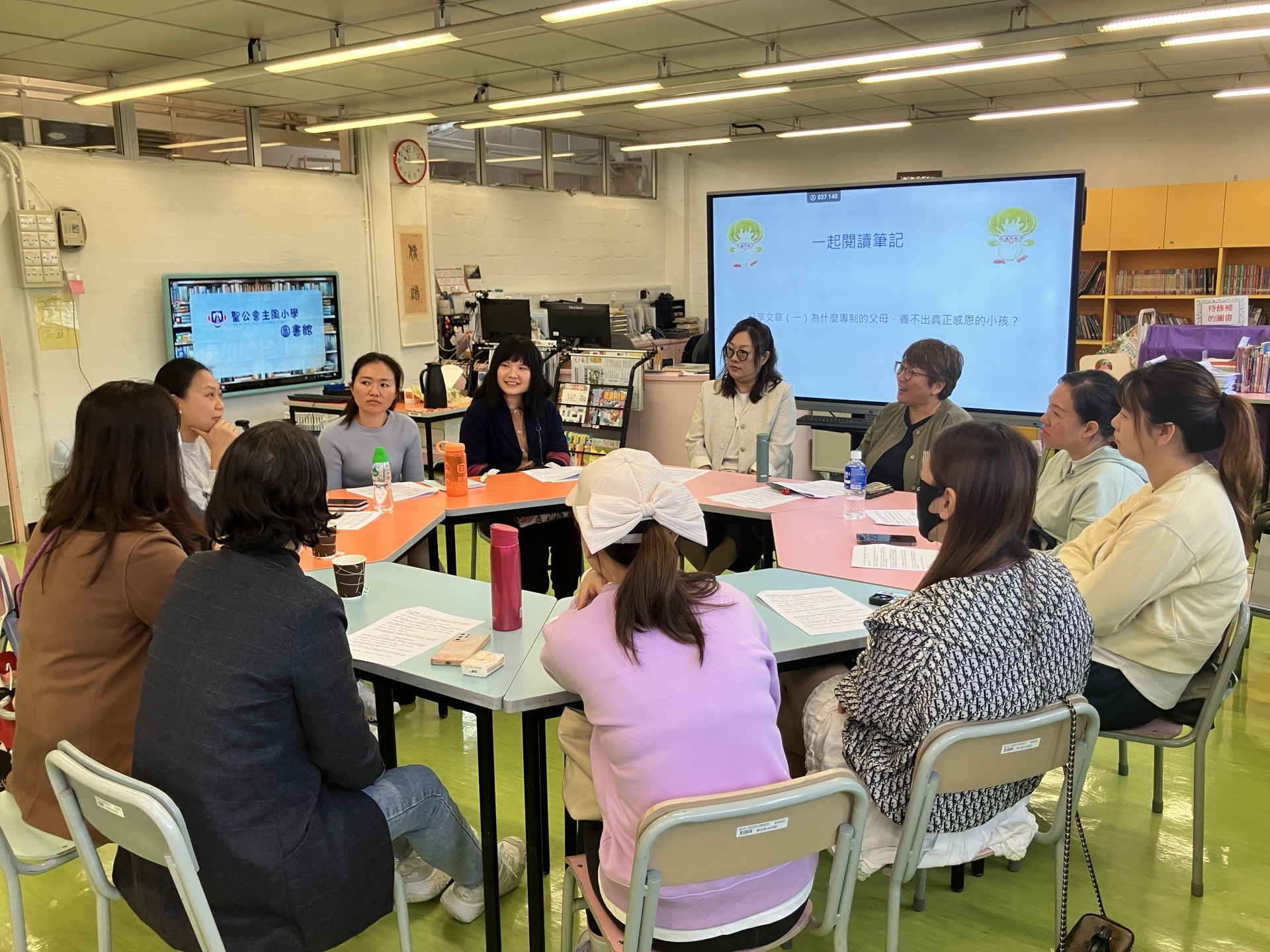 本校邀了繪本專家菜姨姨於11月12日、11月19日、12月3日為期三日主領「故事爸媽培訓工作坊-初階」提升家長說故事的技巧,讓他們成為「故事爸媽」的義工,為低小的學生講故事,提升閲讀氣氛及促進家校合作關係。