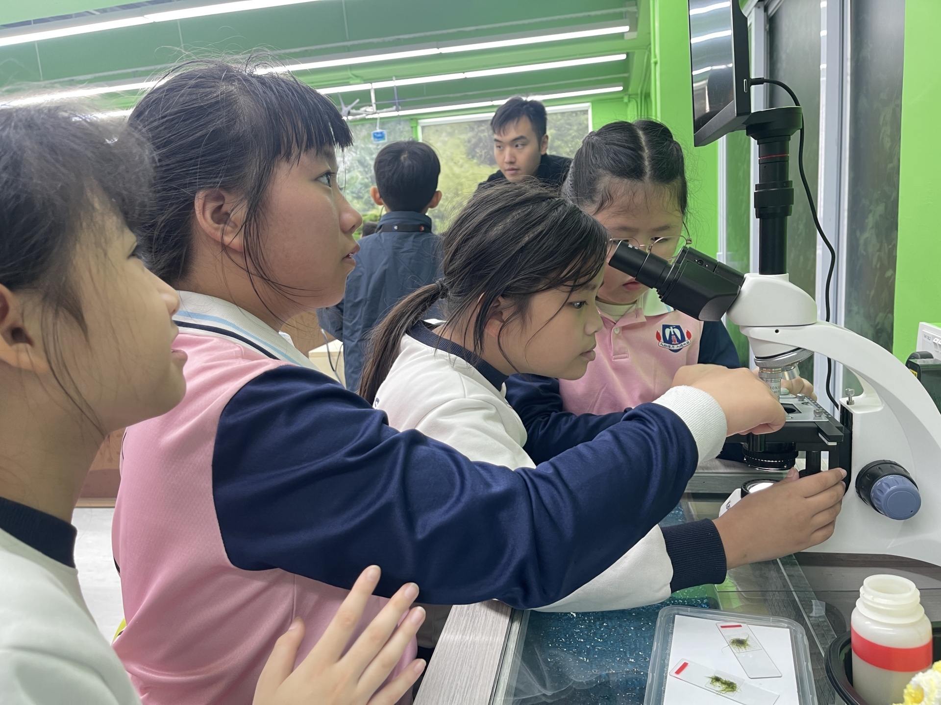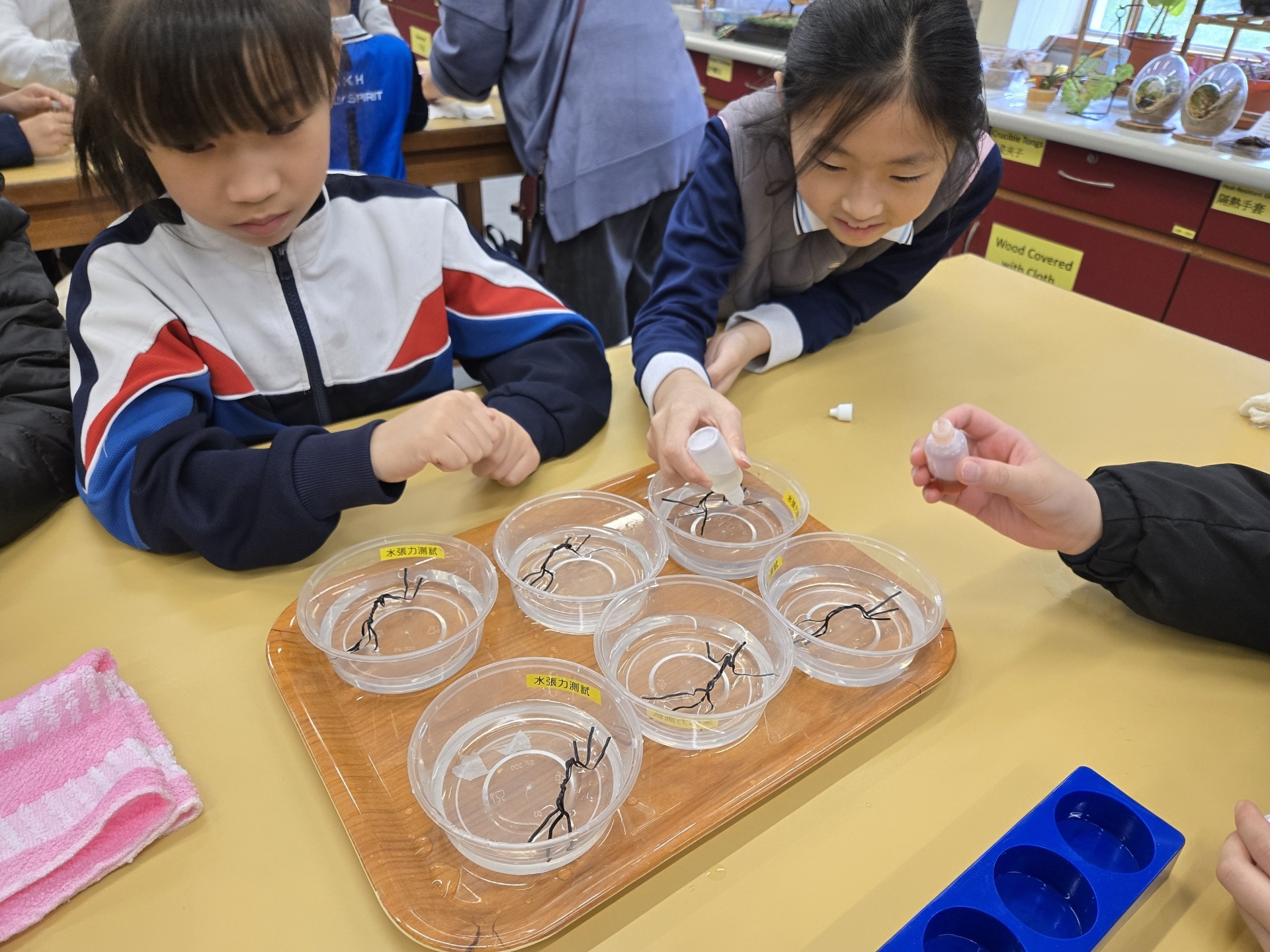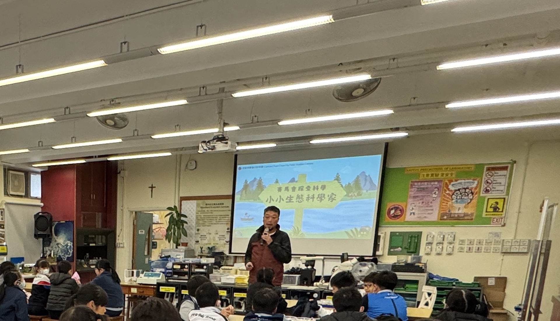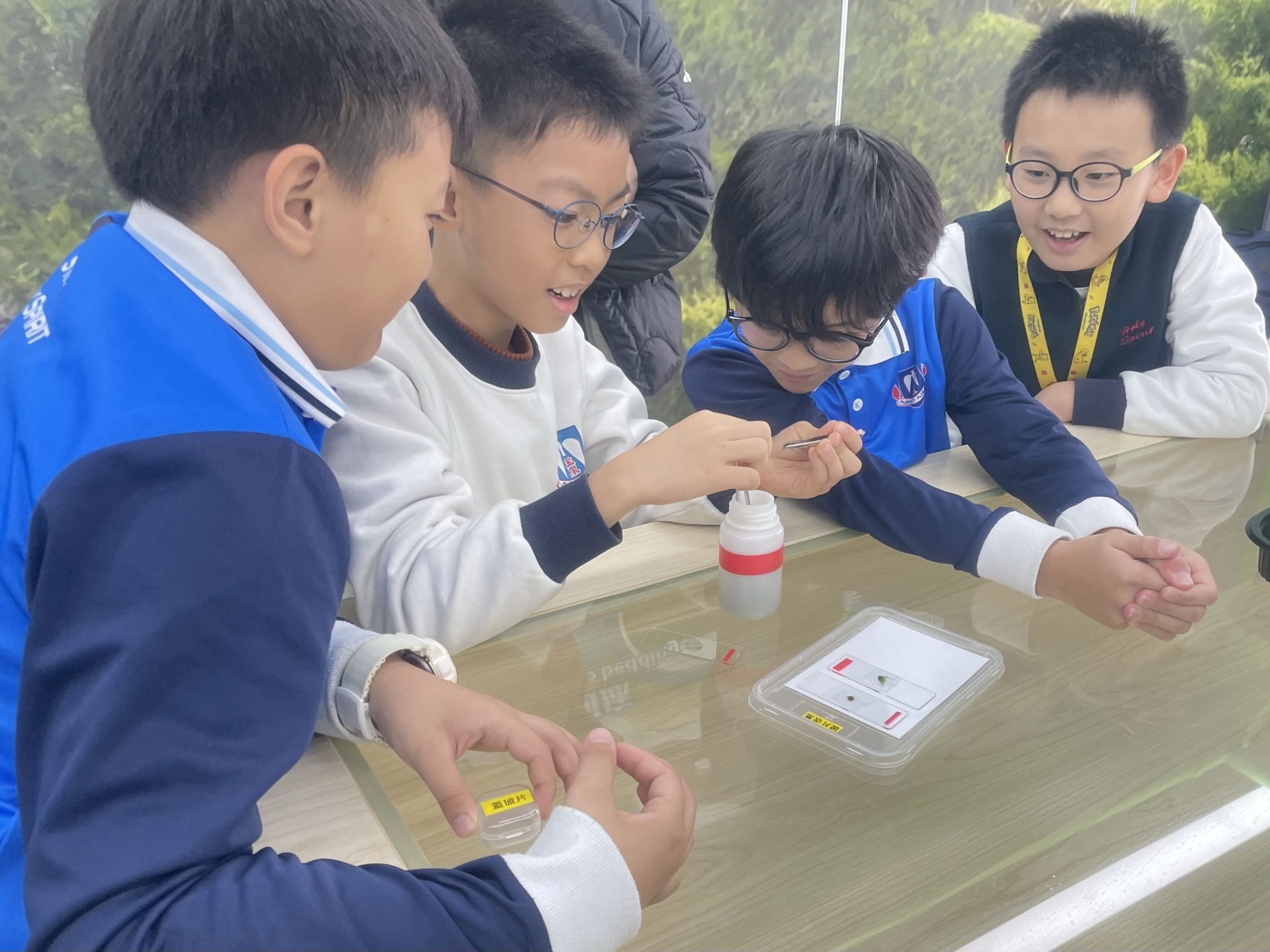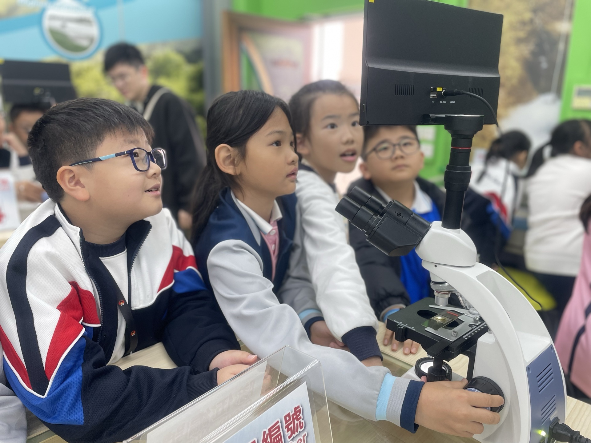 2025年11月19日四年級進行人文科及科學科戶外學習日,學生前往長洲明愛陳震夏郊野學園,進行不同實驗。學生透過活動A:製作水鉸剪,認識水面張力,了解到洗潔精會破壞水面張力。學生在活動B:水質調查,了解水含有不同的物質,而這些物質的數量會影響到水的品質。最後,學生在活動C:使用顯微鏡,觀察水中的微生物和浮游植物。活動過程中學生積極投入,踴躍參與活動及回答問題,透過觀察水中微生物、檢測水中的污染度,及了解污染河道的成因,學習如何保護生態環境,為地球出一分力。