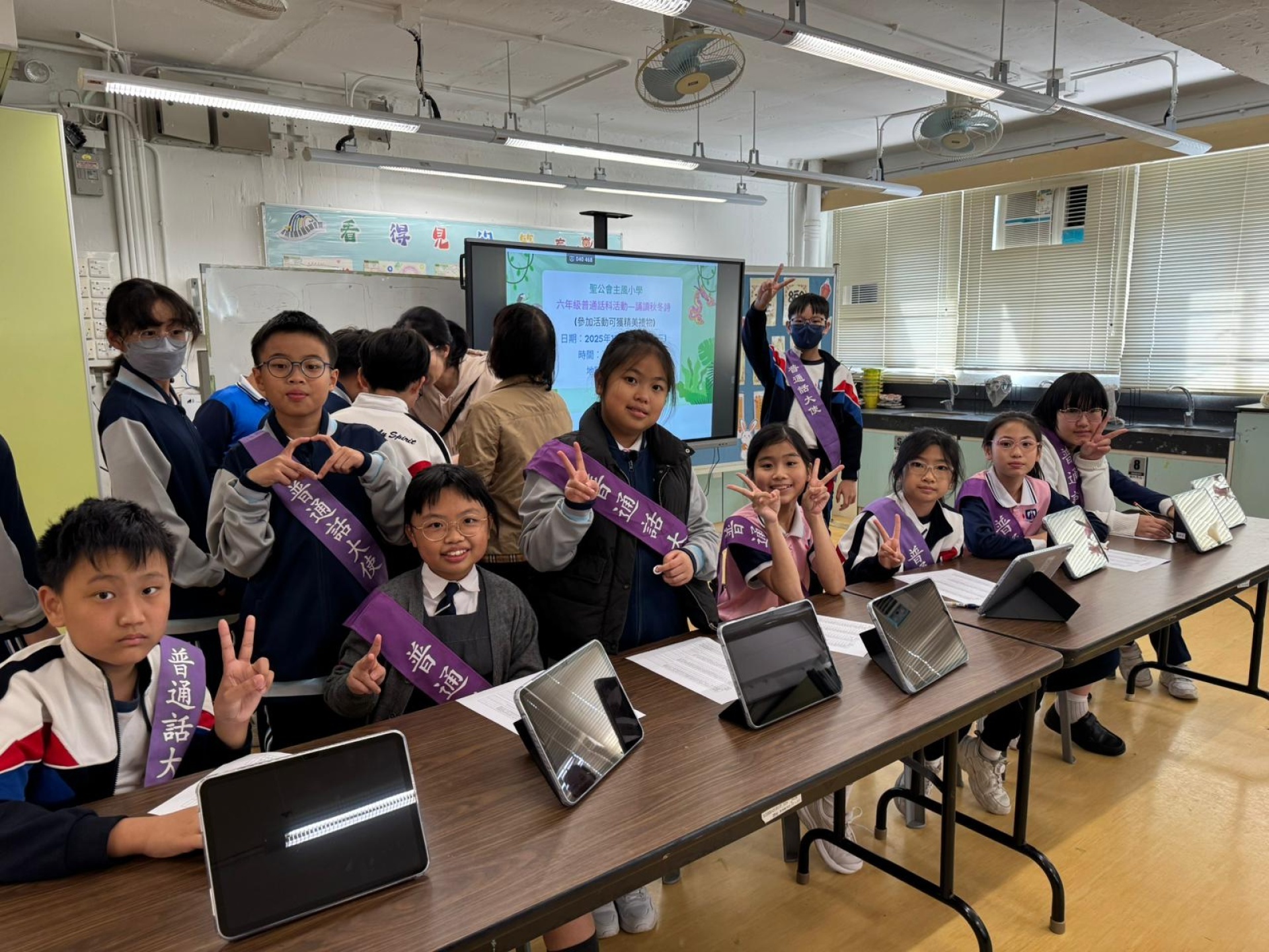普通話組於11月26日順利進行了普通話活動─「誦讀秋冬詩」,學生們踴躍參與,禮堂裏朗讀聲不絕於耳。