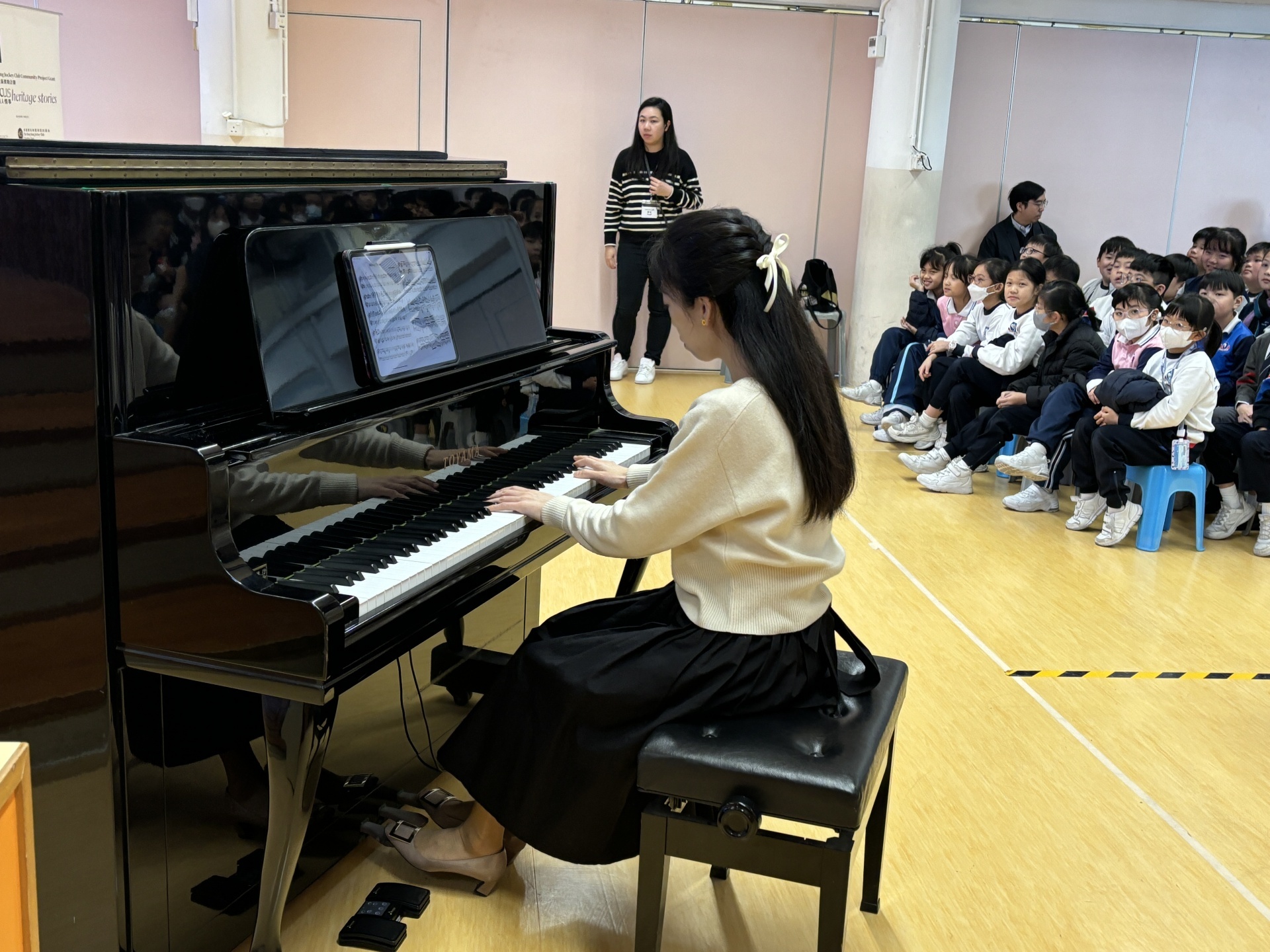 2026年1月21日,小四至小六級學生到禮堂參加由誼樂社舉辦的「樂訪校園_樂. 憶古人情事」音樂會。「樂訪校園」是結合現場音樂、戲劇表演於一身的教育活動。透過一小時的跨學科活動,學生能夠認識古典音樂之餘,也能夠學習香港古蹟及歷史。兩位演員以互動、有趣的方式,透過故事讓學生認識音樂與香港古蹟的關連。此外,誼樂社安排藝術家李嘉齡、賈楠於活動中以鋼琴/大提琴獨奏表演與古蹟有關的樂曲。