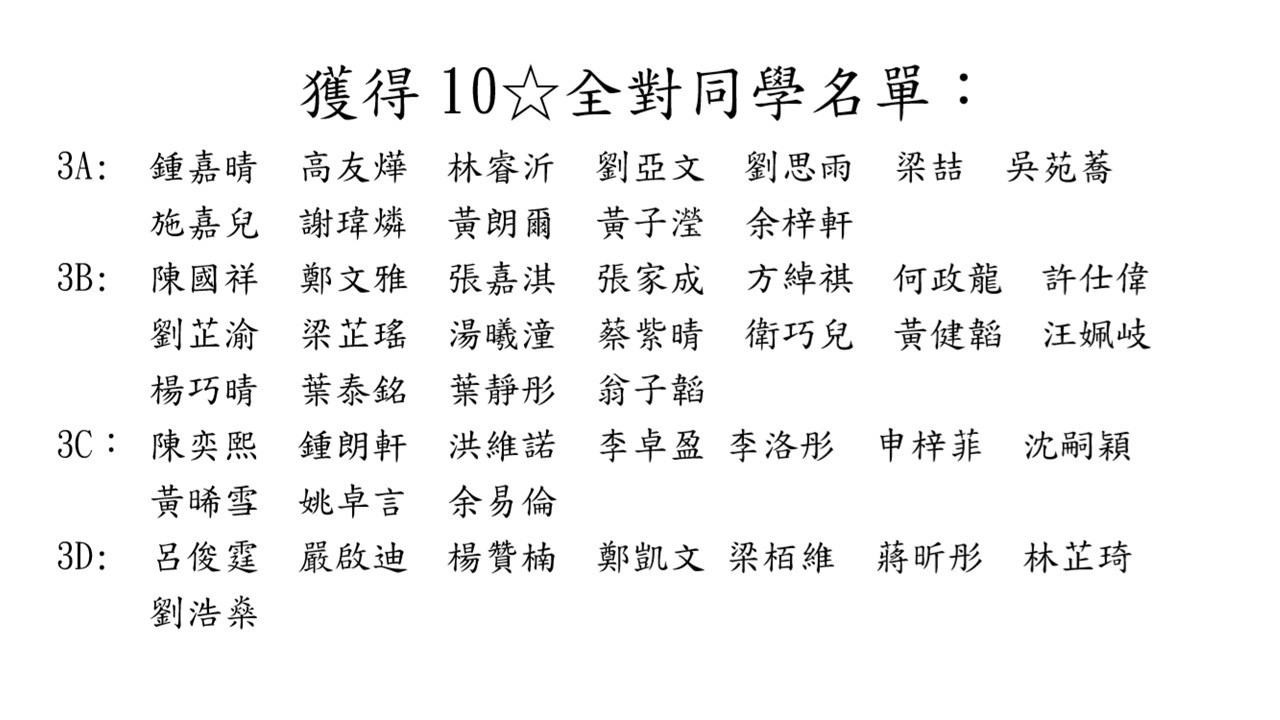於課堂以外舉辦活動及比賽,培養學生自主學習的能力。此外,為了提升學生成就感,題目分為不同程度的1☆、 2☆及 3☆,同學可選擇接受不同挑戰,表現優良的學生可獲獎品及獎狀作鼓勵。