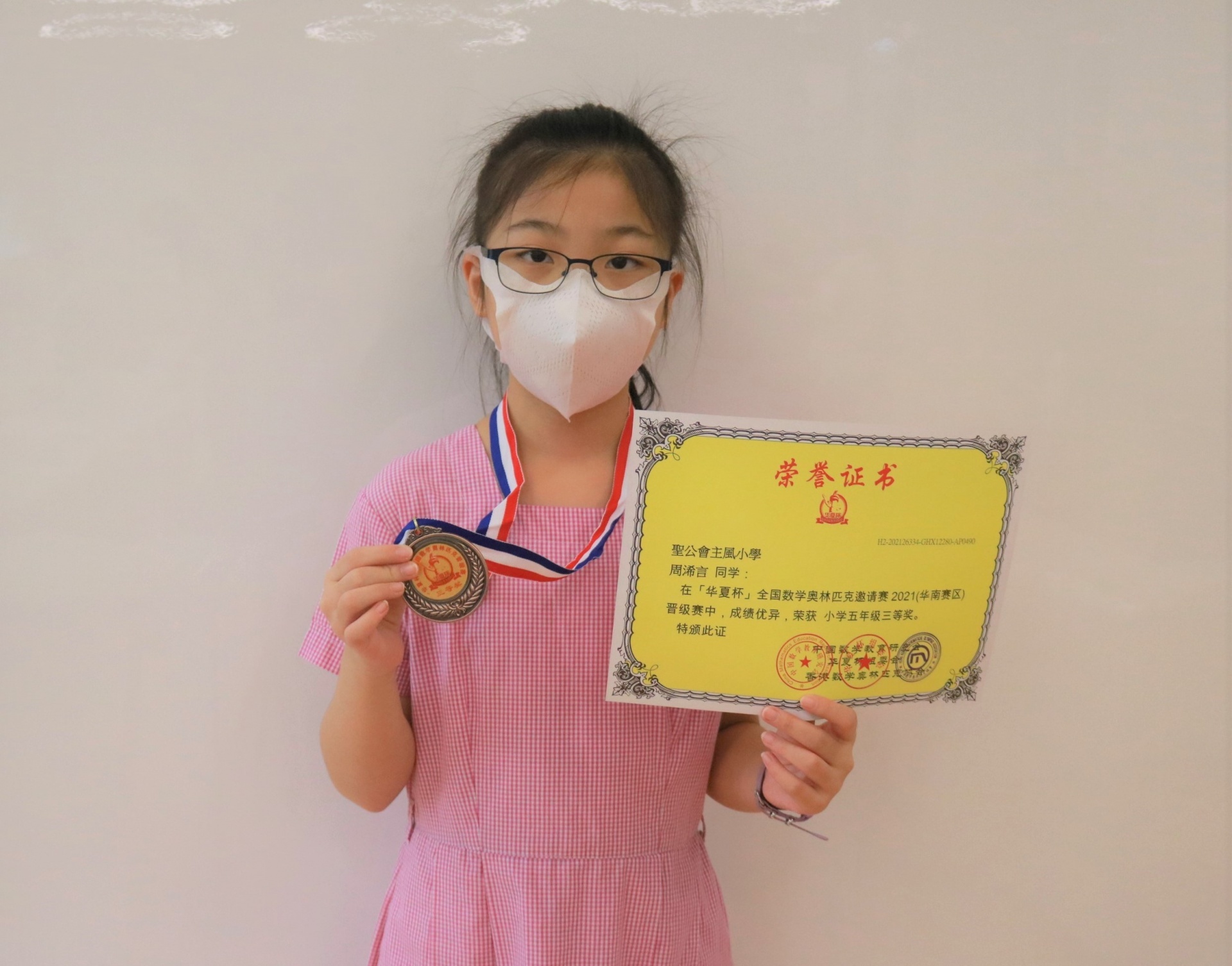 「華夏盃」全國數學奧林匹克邀請賽2021(香港賽區)晉級賽 – 三等獎 2C 謝慷輝 5A 周浠言