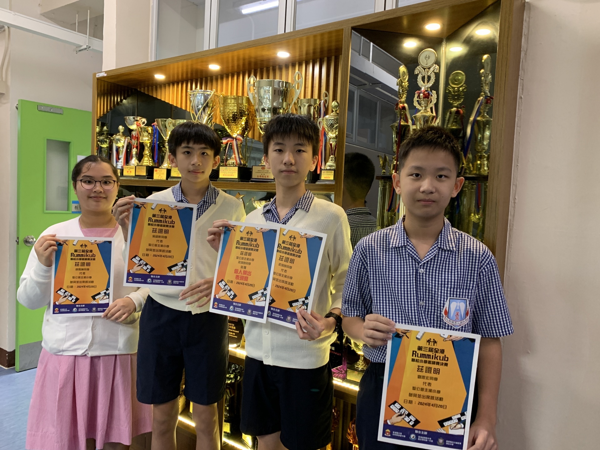 4月20日,6A 梁靖朗、6B 吳銘軒、6C 胡雅琳 及 5C 劉思宏代表學校於聖公會何明華會督中學進行第三屆全港Rummikub聯校小學邀請賽決賽,同學們投人比賽,與不同學校的學生互相切磋,6A 梁靖朗更榮獲個人傑出表現獎。