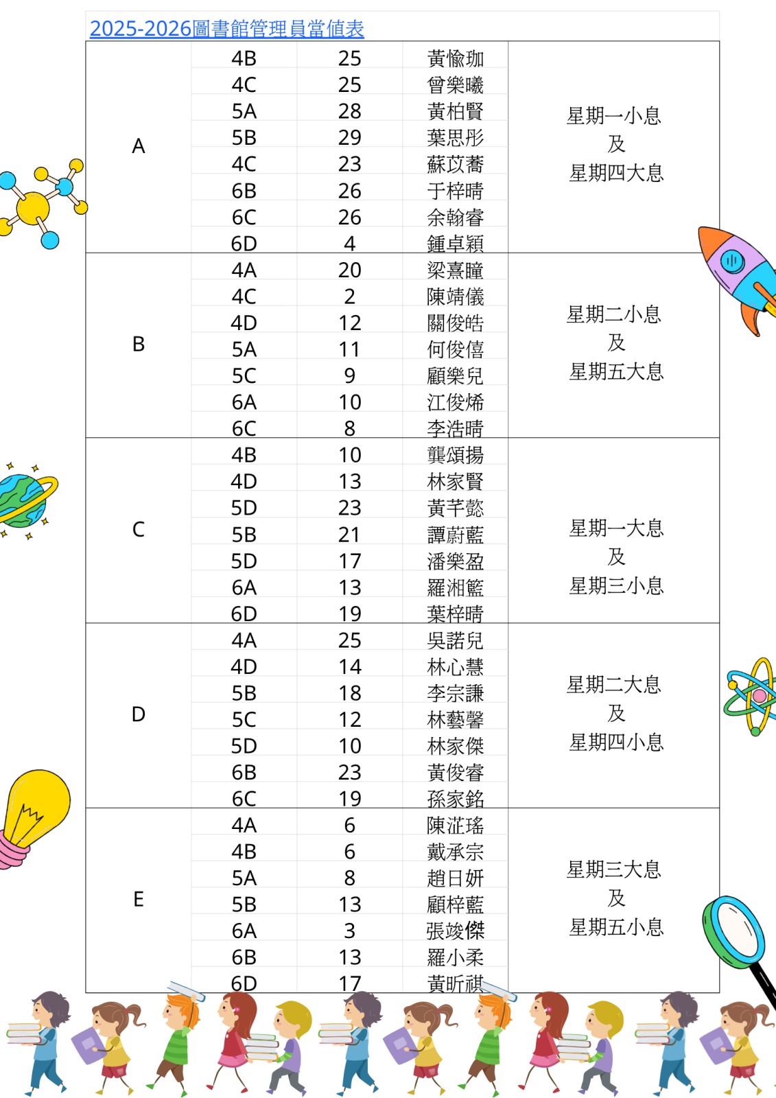 中文科 English 數學科 常識科 宗教科 視覺藝術科 音樂科 體育科 普通話科 圖書科 資訊科技科